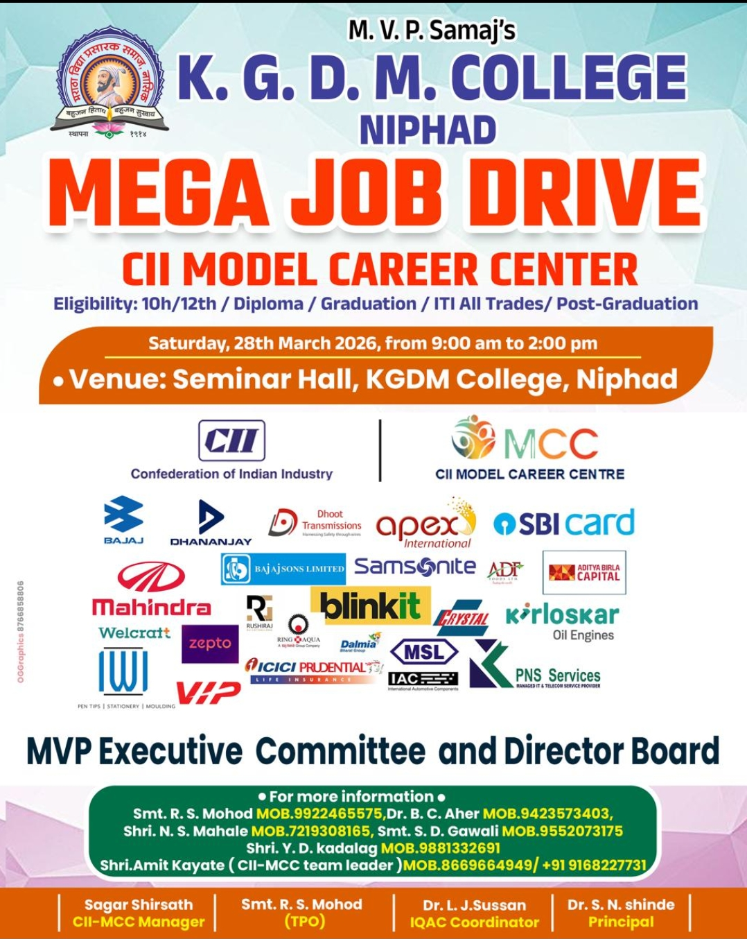The Maratha Vidya Prasarak (MVP) Samaj is one of the most prestigious institute creating the landscape of education within Nashik District since last 108 years. This college elucidated the motto and high-lighted the perspective towards education as a means of social wellbeing.